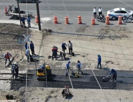 Bajo el programa “Piso Parejo” se realizan trabajos por parte de Servicios Públicos y de dicha empresa para que al momento de cruzar las vías del tren los automovilistas lo hagan con mayor seguridad y sus vehículos no sufran daños.